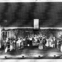 The caption was given by donor Dorine Garcia: "Entire cast of "El Aguila" at The House of Neighborly Service in Redlands. "El Aguila" was similar to the Pauda hills play Redlands answer to that as a story of old Mexico produced in the 1930s for a few years. Blaz Coyazo Joe Hererra all in it as well."